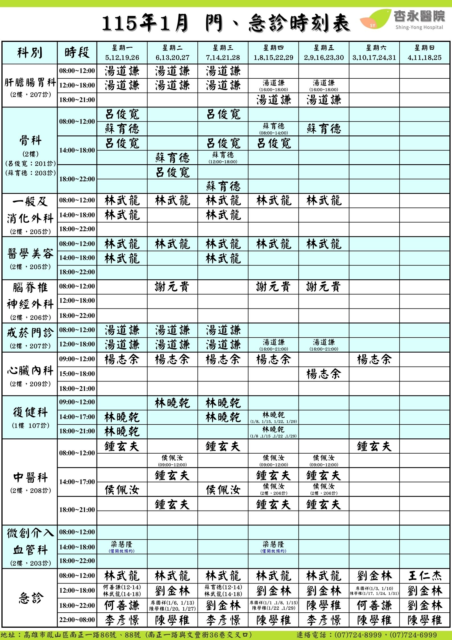 115年1月門診表